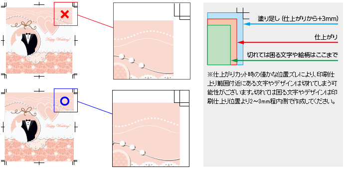 また背景色がある場合、飾りや罫線が端まである場合は下記「ぬりたし」を付けてご入稿ください。