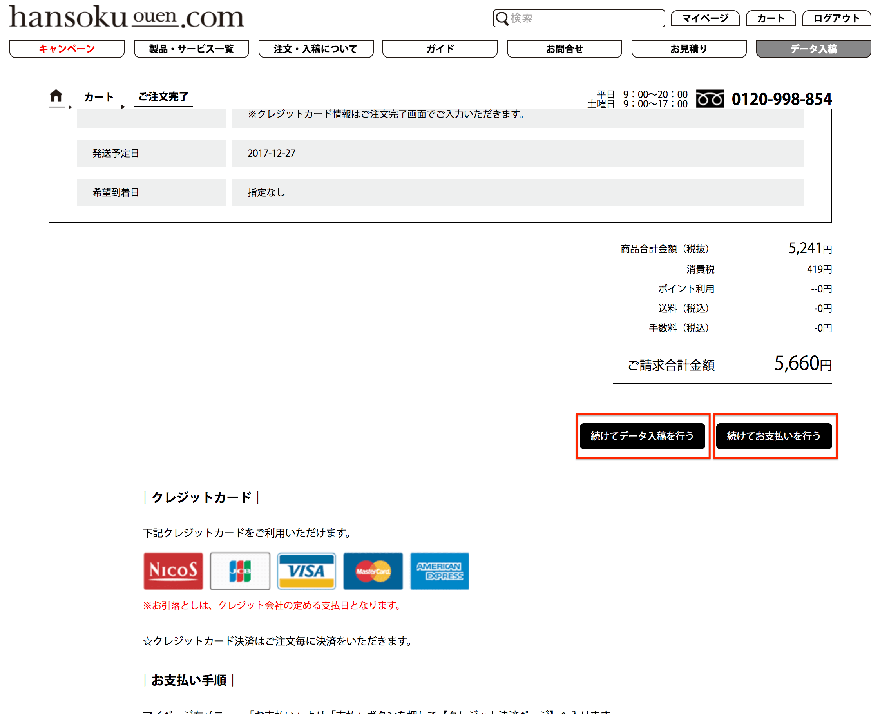 事前にご注文だけ済ませて後日の入稿やお支払いも可能です。